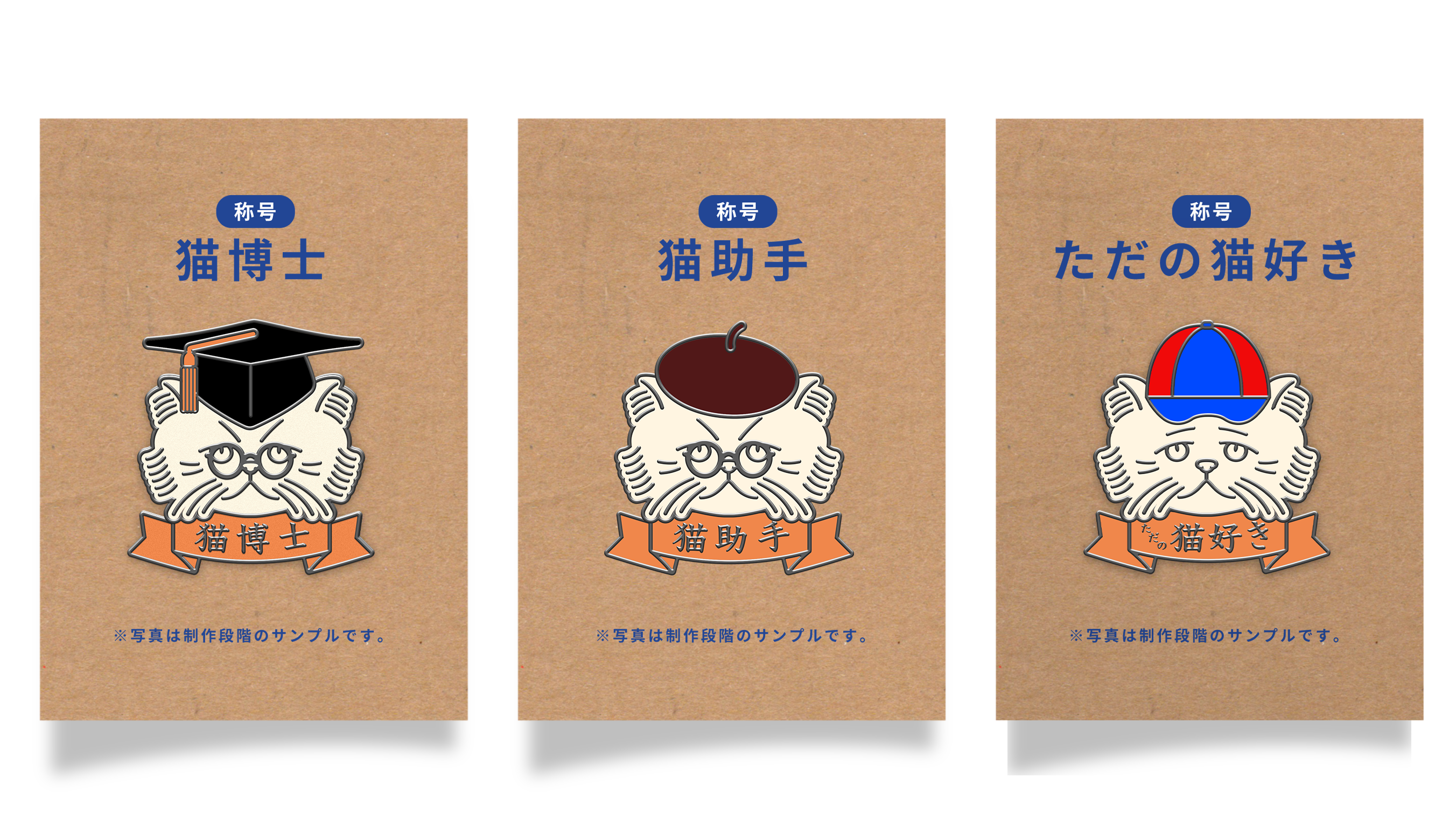猫博士の認定バッジを着用すると年に2回開催される猫雑貨イベント"ニャンフェス"へ優先的にご入場いただけます。